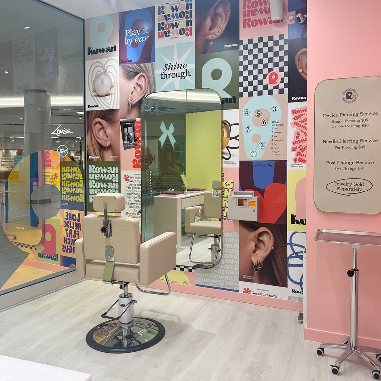 At Rowan, safety is standard. Ear piercings are performed exclusively by a licensed Nurse and our hypoallergenic earrings are made from premium, nickel-free materials. Rowan nurses are trained in creating a stress-free environment, and are experts in the use of PPE and maintaining sterility. They always put the safety of their clients first.