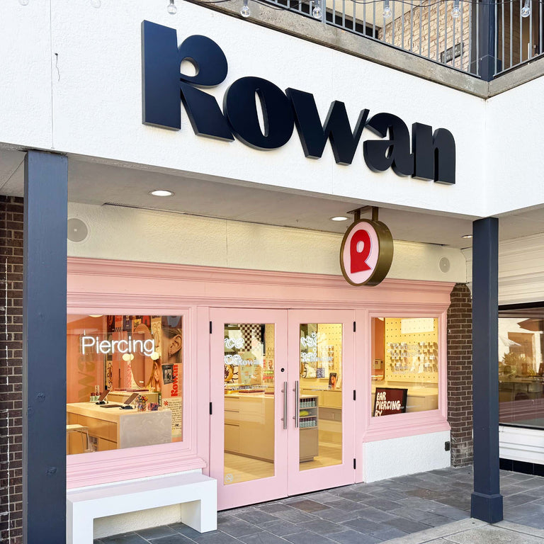 What types of piercings are offered?Rowan is all ears! We only pierce and change jewelry for the outer ear, including lobe, helix, mid helix, forward helix, flat, conch, and tragus piercings. (Placement availability may vary by studio location.)