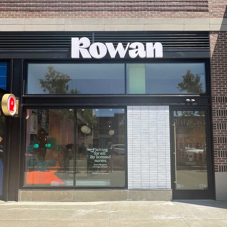 What types of piercings are offered?Rowan is all ears! We only pierce and change jewelry for the outer ear, including lobe, helix, mid helix, forward helix, flat, conch, and tragus piercings. (Placement availability may vary by studio location.)