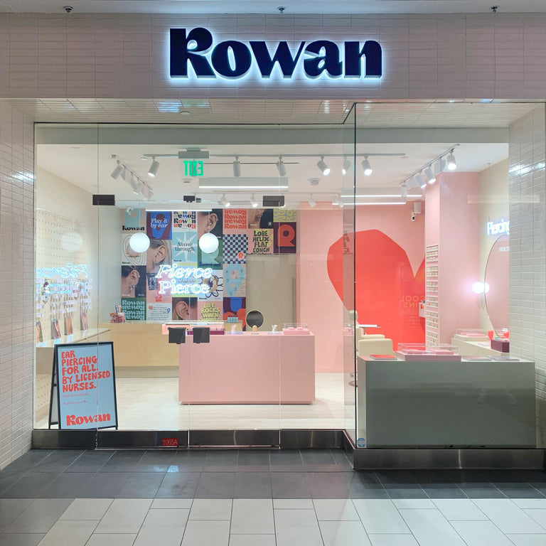 What types of piercings are offered?Rowan is all ears! We only pierce and change jewelry for the outer ear, including lobe, helix, mid helix, forward helix, flat, conch, and tragus piercings. (Placement availability may vary by studio location.)