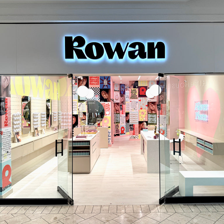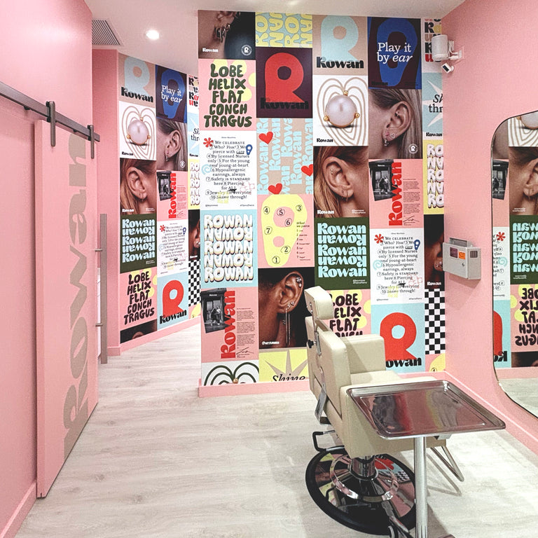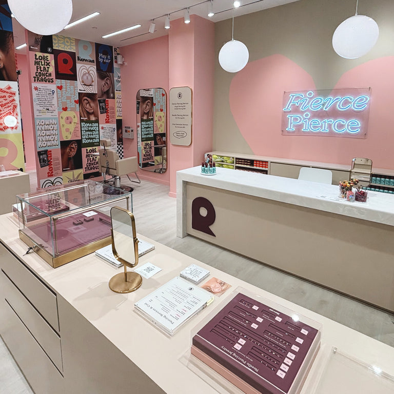 What types of piercings are offered?Rowan is all ears! We only pierce and change jewelry for the outer ear, including lobe, helix, mid helix, forward helix, flat, conch, and tragus piercings. (Placement availability may vary by studio location.)