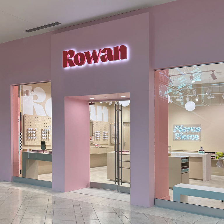 What types of piercings are offered?Rowan is all ears! We only pierce and change jewelry for the outer ear, including lobe, helix, mid helix, forward helix, flat, conch, and tragus piercings. (Placement availability may vary by studio location.)