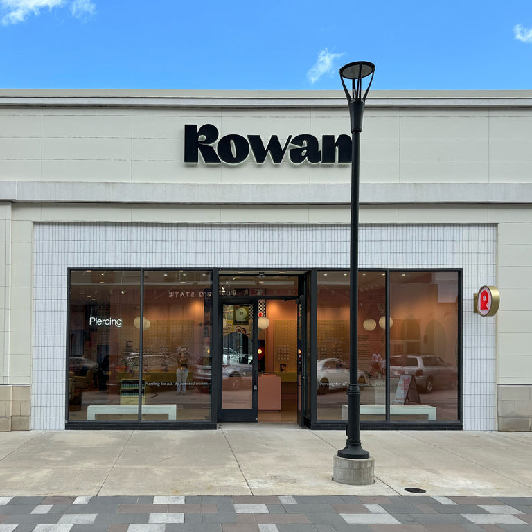 Rowan is all ears! We only pierce and change jewelry for the outer ear, including lobe, helix, mid helix, forward helix, flat, conch, and tragus piercings. (Placement availability may vary by studio location.)
