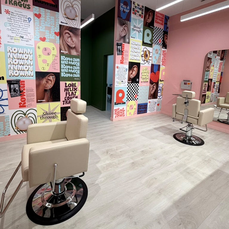 At Rowan, safety is standard. Ear piercings are performed exclusively by a licensed Nurse and our hypoallergenic earrings are made from premium, nickel-free materials. Rowan nurses are trained in creating a stress-free environment, and are experts in the use of PPE and maintaining sterility. They always put the safety of their clients first.
