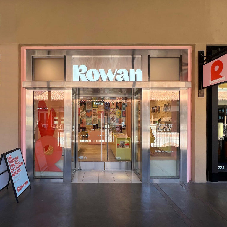 Rowan is all ears! We only pierce and change jewelry for the outer ear, including lobe, helix, mid helix, forward helix, flat, conch, and tragus piercings. (Placement availability may vary by studio location.)