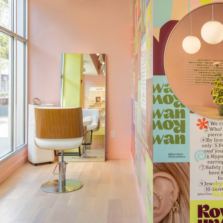 Rowan is all ears! We only pierce and change jewelry for the outer ear, including lobe, helix, mid helix, forward helix, flat, conch, and tragus piercings. (Placement availability may vary by studio location.)
