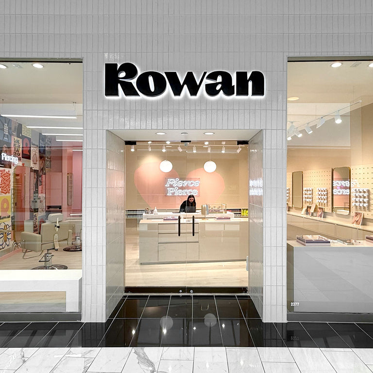 Rowan is all ears! We only pierce and change jewelry for the outer ear, including lobe, helix, mid helix, forward helix, flat, conch, and tragus piercings. (Placement availability may vary by studio location.)