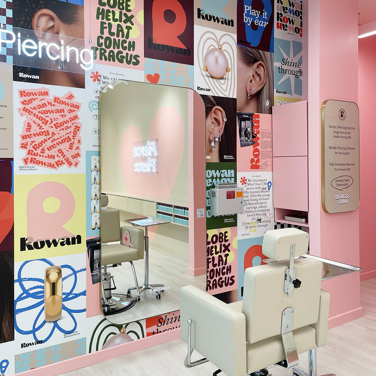 At Rowan, safety is standard. Ear piercings are performed exclusively by a licensed Nurse and our hypoallergenic earrings are made from premium, nickel-free materials. Rowan nurses are trained in creating a stress-free environment, and are experts in the use of PPE and maintaining sterility. They always put the safety of their clients first.