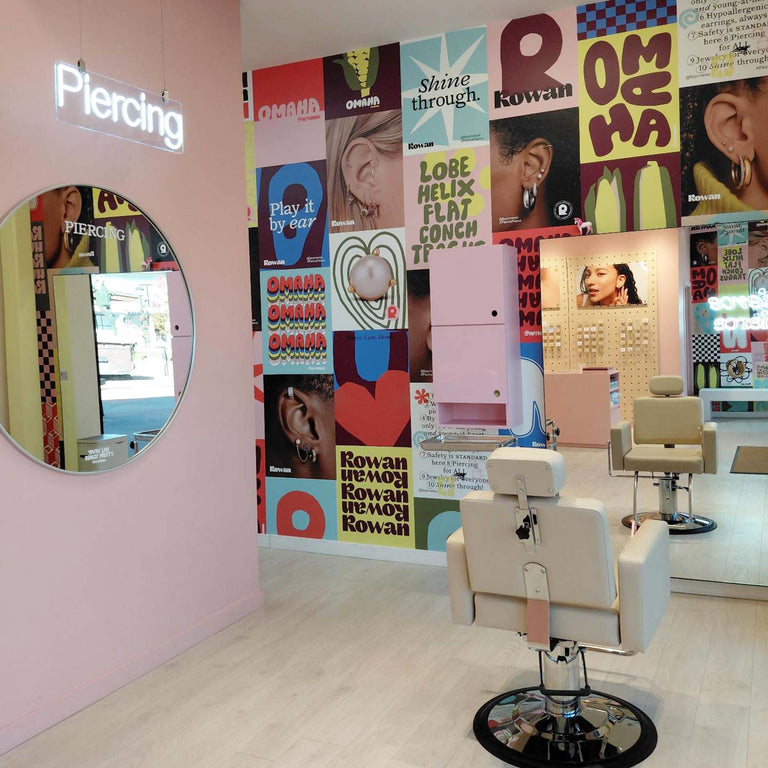 Rowan is all ears! We only pierce and change jewelry for the outer ear, including lobe, helix, mid helix, forward helix, flat, conch, and tragus piercings. (Placement availability may vary by studio location.)
