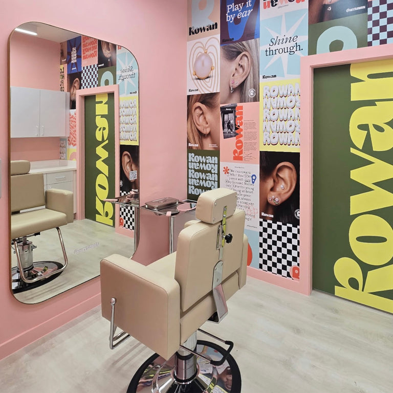 At Rowan, safety is standard. Ear piercings are performed exclusively by a licensed Nurse and our hypoallergenic earrings are made from premium, nickel-free materials. Rowan nurses are trained in creating a stress-free environment, and are experts in the use of PPE and maintaining sterility. They always put the safety of their clients first.