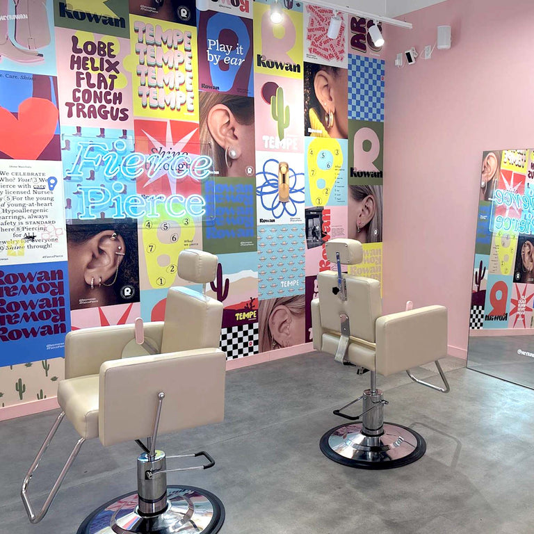 Rowan Tempe Marketplace is your local destination for safe ear piercings by licensed nurses in Arizona. Whether it’s a first piercing or your fifth, we create a fun, safe, and stylish experience for all ages.