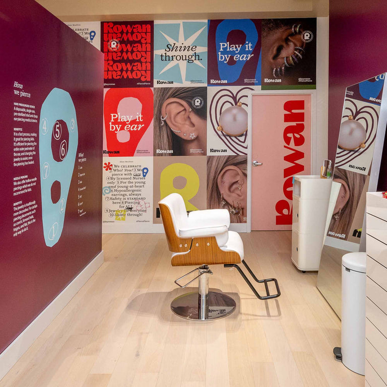 At Rowan, safety is standard. Ear piercings are performed exclusively by a licensed Nurse and our hypoallergenic earrings are made from premium, nickel-free materials. Rowan nurses are trained in creating a stress-free environment, and are experts in the use of PPE and maintaining sterility. They always put the safety of their clients first.