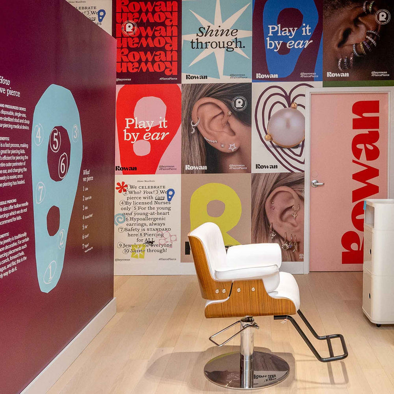 At Rowan, safety is standard. Ear piercings are performed exclusively by a licensed Nurse and our hypoallergenic earrings are made from premium, nickel-free materials. Rowan nurses are trained in creating a stress-free environment, and are experts in the use of PPE and maintaining sterility. They always put the safety of their clients first.