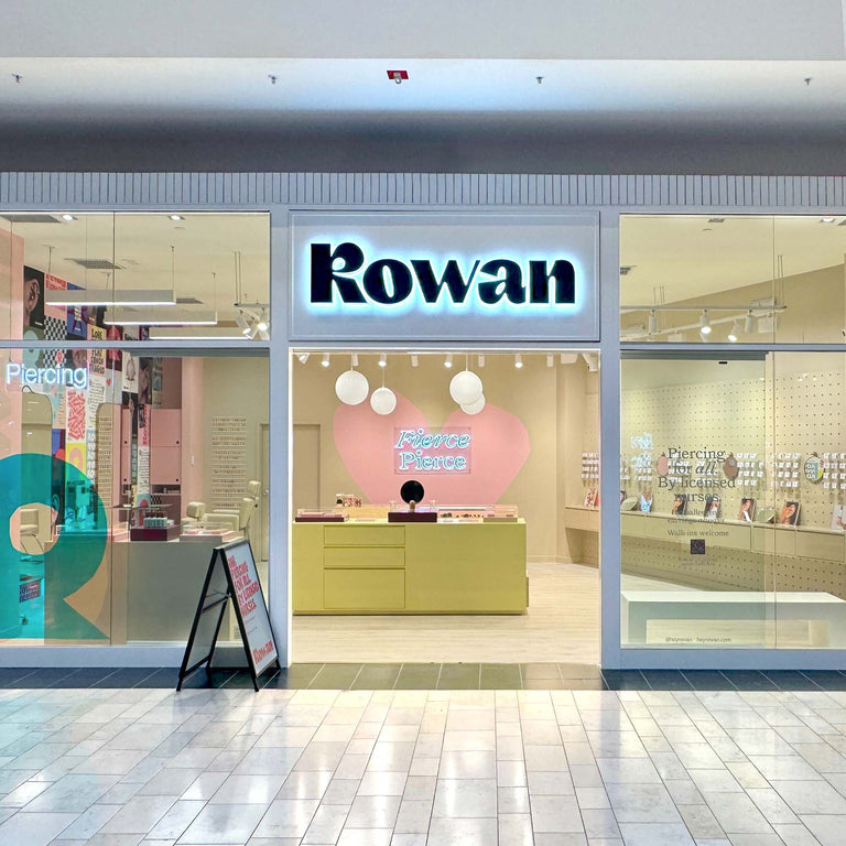 What types of piercings are offered?Rowan is all ears! We only pierce and change jewelry for the outer ear, including lobe, helix, mid helix, forward helix, flat, conch, and tragus piercings. (Placement availability may vary by studio location.)