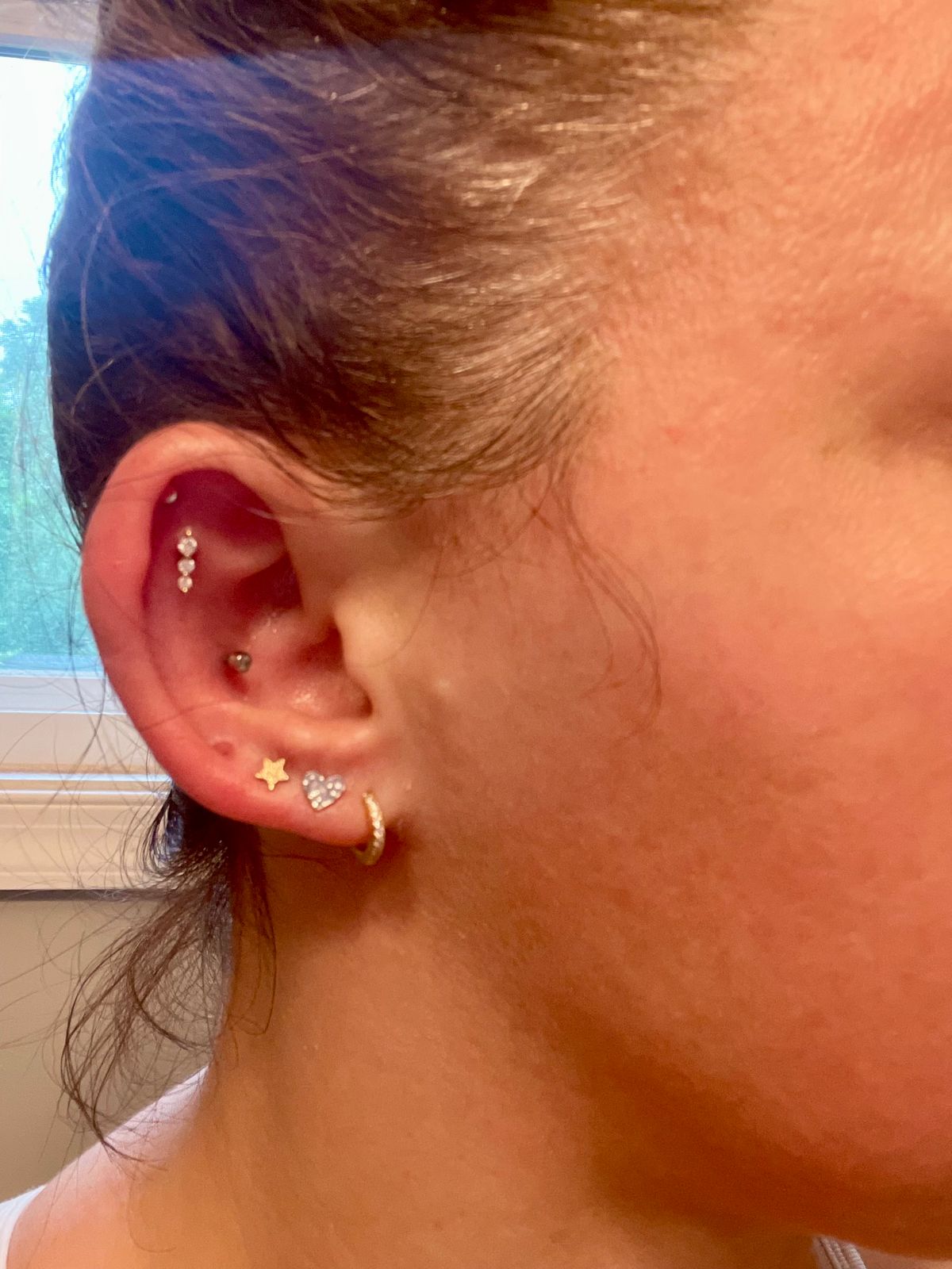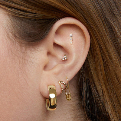 Our flat back earrings feature a titanium post used for piercing. Post-piercing, upgrade to 14k gold posts for $20 per post.