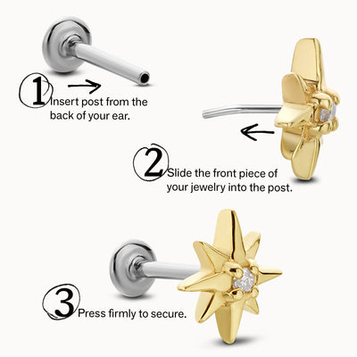 Step 1: Insert the post from the back of your ear.