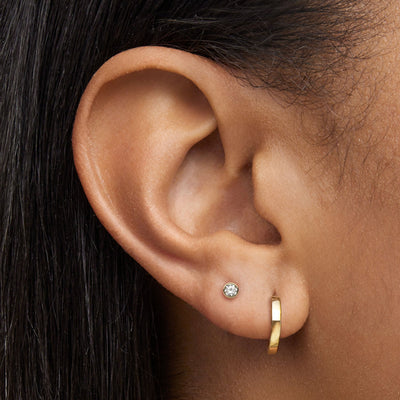 Our Bezel Studs & Square Edge Huggies Set pairs sleek bezel studs with modern square edge huggies for a versatile, polished look that’s perfect for mixing, matching, and layering.
