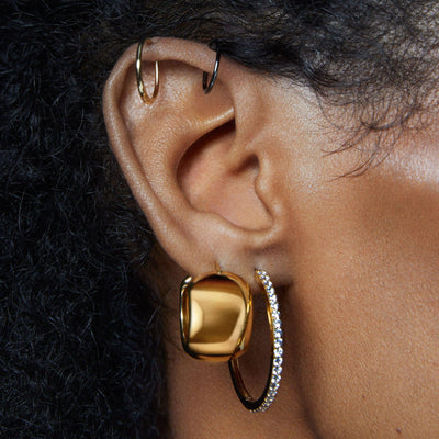 Big dreams and even bigger Pillow Hoops! Meet the hoops of your dreams. This dreamy new style has a pillowy shape that is lightweight and sure to make a big statement. Easy-to-wear hidden lever backs ensure comfortable, balanced, wear-all day, all night! Also available in a smaller size. Sold as a pair.