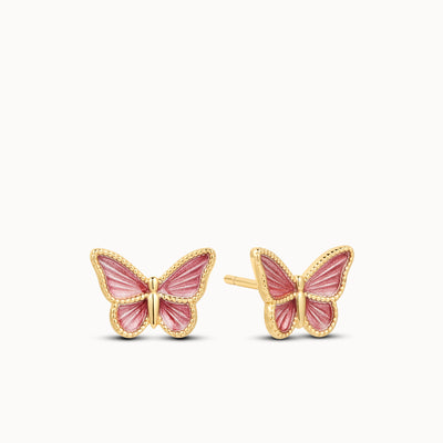Designed to add a playful touch to any outfit are our Pink Enamel Butterfly Studs. Sport this timeless representation of beauty, freedom, and joy all year long.